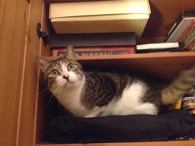 我們就來舉個例子吧,住在這個家,常常會發生很好笑的事,MoonMoon貓小姐好心告訴大家,比方剛才,Lightning大貓哥站在我現在坐的位置,探頭探腦的看媽媽開櫃子找東西,