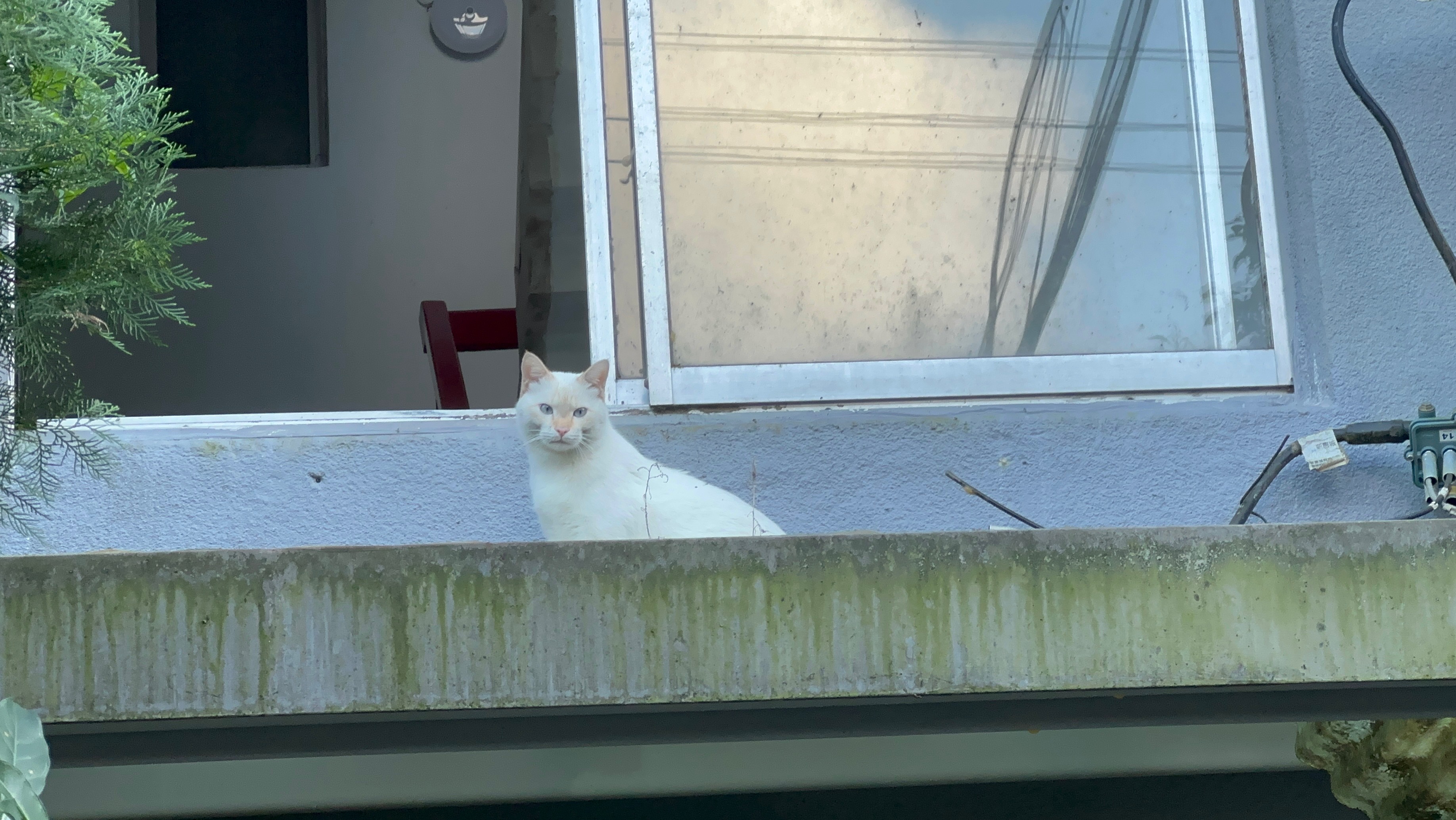 本來去年夏天起他跟我的關係越來越好,我在路邊上定點餵食金小胖圈圈時,大白也不時在我們身邊出現,他從不搶食圈圈吃的飯,圈圈也不顧忌他在旁邊看。他是很有風度的貓,從不讓圈圈感覺到壓力。